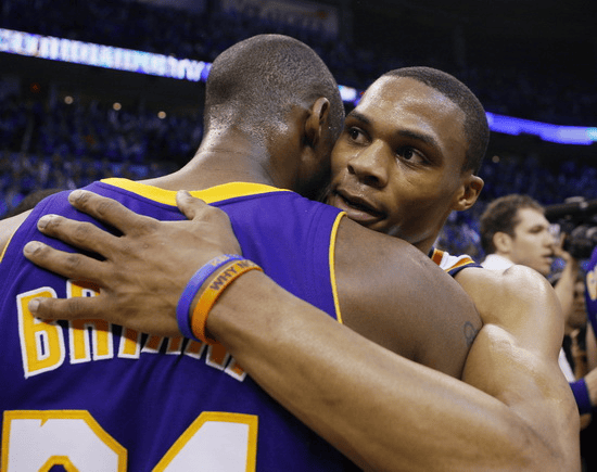 全場比賽,雷霆球員拉塞爾-威斯布魯克26中15砍下37分,凱文-杜蘭特18中10得到31分13籃板,科比-布萊恩特28中12空砍38分8籃板5助攻。