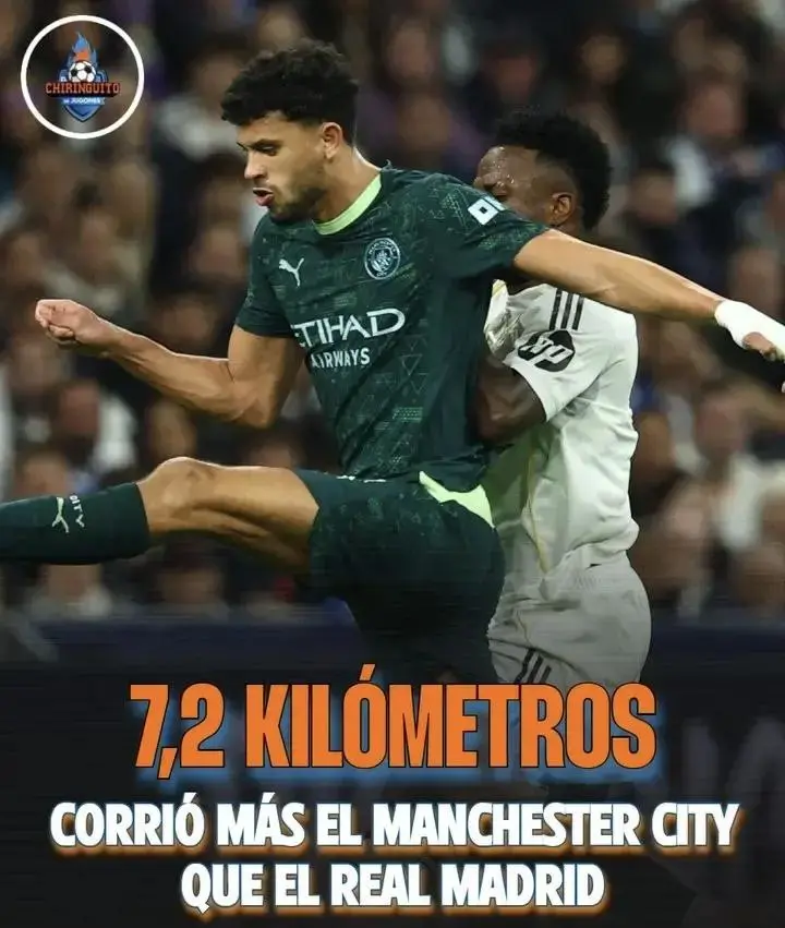 相差7.2公里,曼城全隊(duì)跑動(dòng)119公里,皇馬跑動(dòng)111.8公里