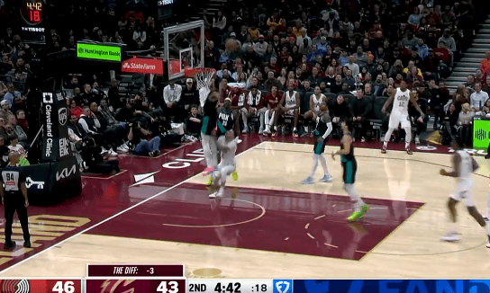 NBA常規(guī)賽,開拓者對陣騎士的爾開比賽正在進行中。