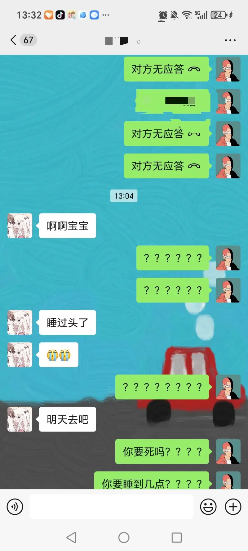 好不容易盼來一個十一假期,我和我女朋友定的今天去約會,吃火鍋,然后她昨天11點到的家,從12點睡到4點,然后醒來和我說話,說完之后從6點睡到今天凌晨2點,然后告訴我四點睡的,我五點醒的開始準(zhǔn)備,我一直等,然后下午1點才醒告訴我起晚了,(她確實一直睡覺,我甚至上她微信給他爸媽打電話了,他媽在上班,他媽說沒喊起來她,睡的太深了……)就這樣一個沒有時間觀念的,誰知道我現(xiàn)在肺都要氣炸的感覺???(情頭是我讓他換的,但是不愛換就只讓她換了)