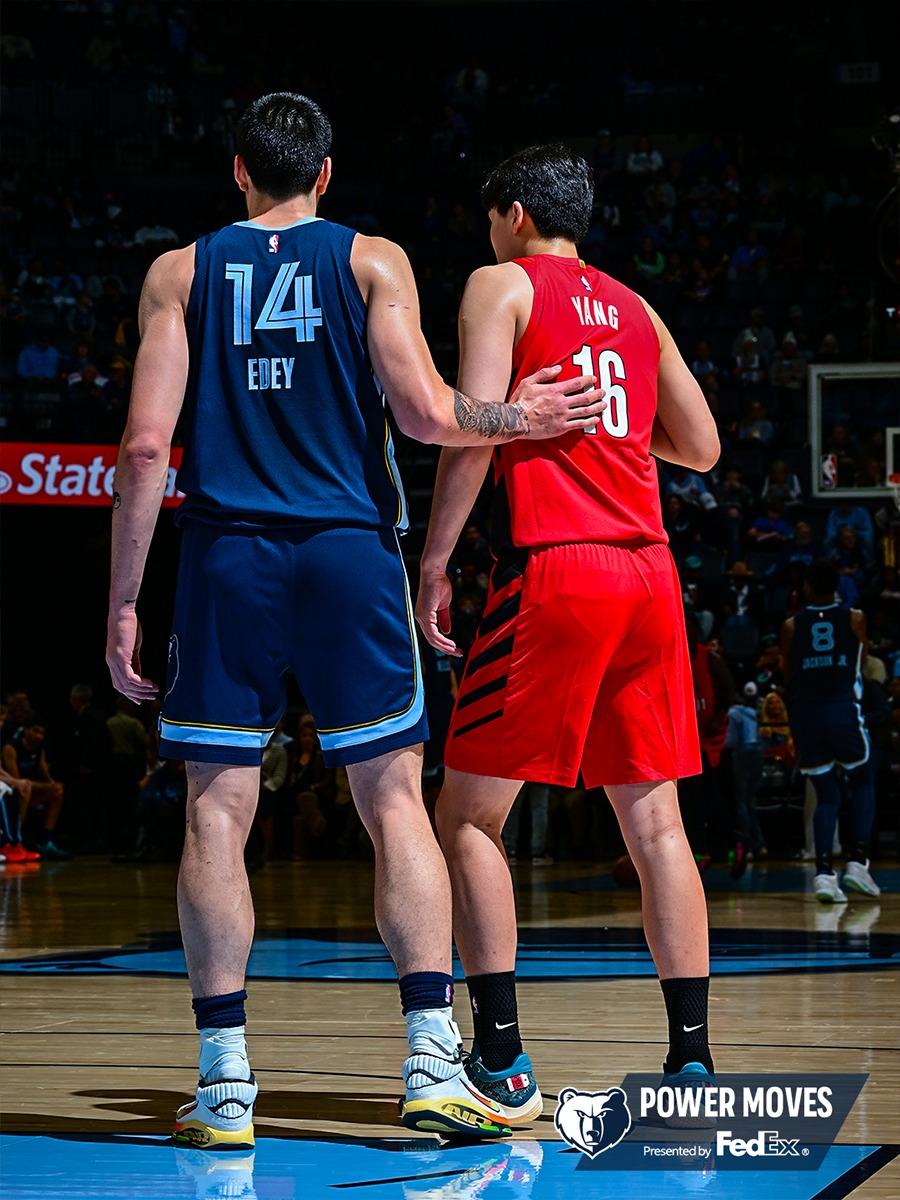 灰熊官方曬出曬伊迪和楊瀚森的對(duì)位圖,并附文:“統(tǒng)治力十足??!”