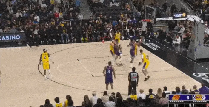 面對(duì)勇士上場(chǎng)21分鐘,喜艾線看希望8中3,防守拿到7分7籃板2蓋帽1失誤,讓球正負(fù)值-25,湖人命中率37.5%