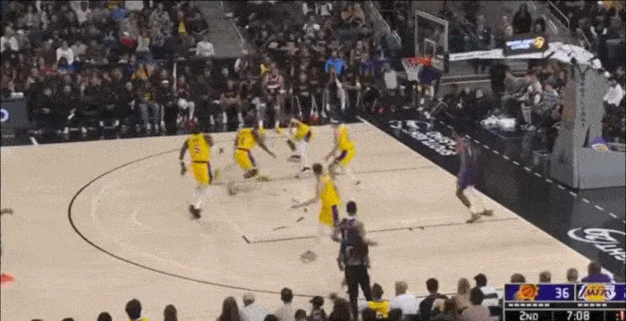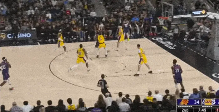 這個(gè)回合想拋給籃下的中鋒空中接力 艾頓加速拍馬趕到 直接扇出界外