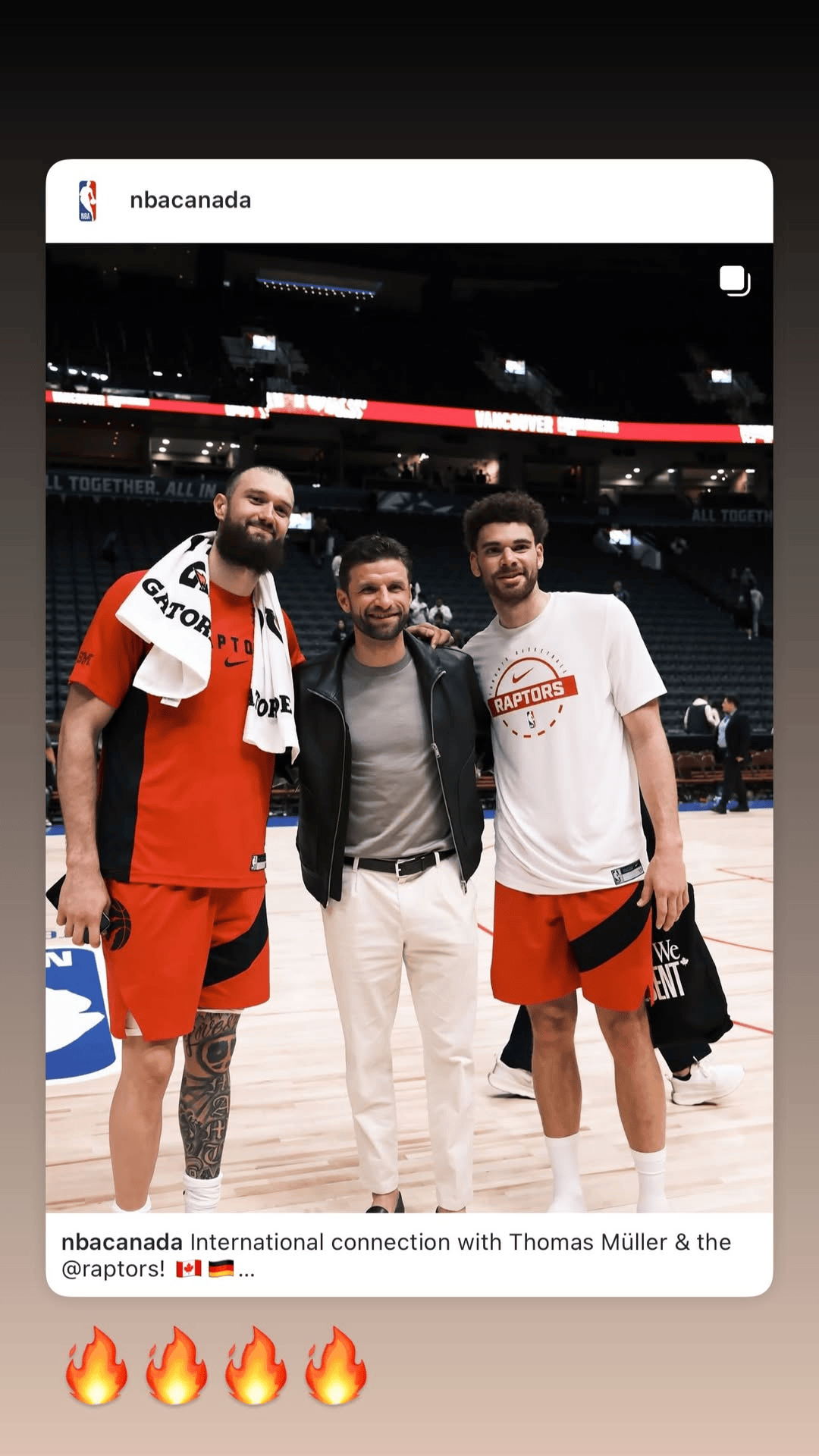 虎撲10月07日訊 猛龍球員桑德羅-馬穆凱拉什維利更新社交媒體,曬出和隊友賈米森-巴特爾一同與足球名宿托馬斯-穆勒的穆曬馬合影與球迷分享。