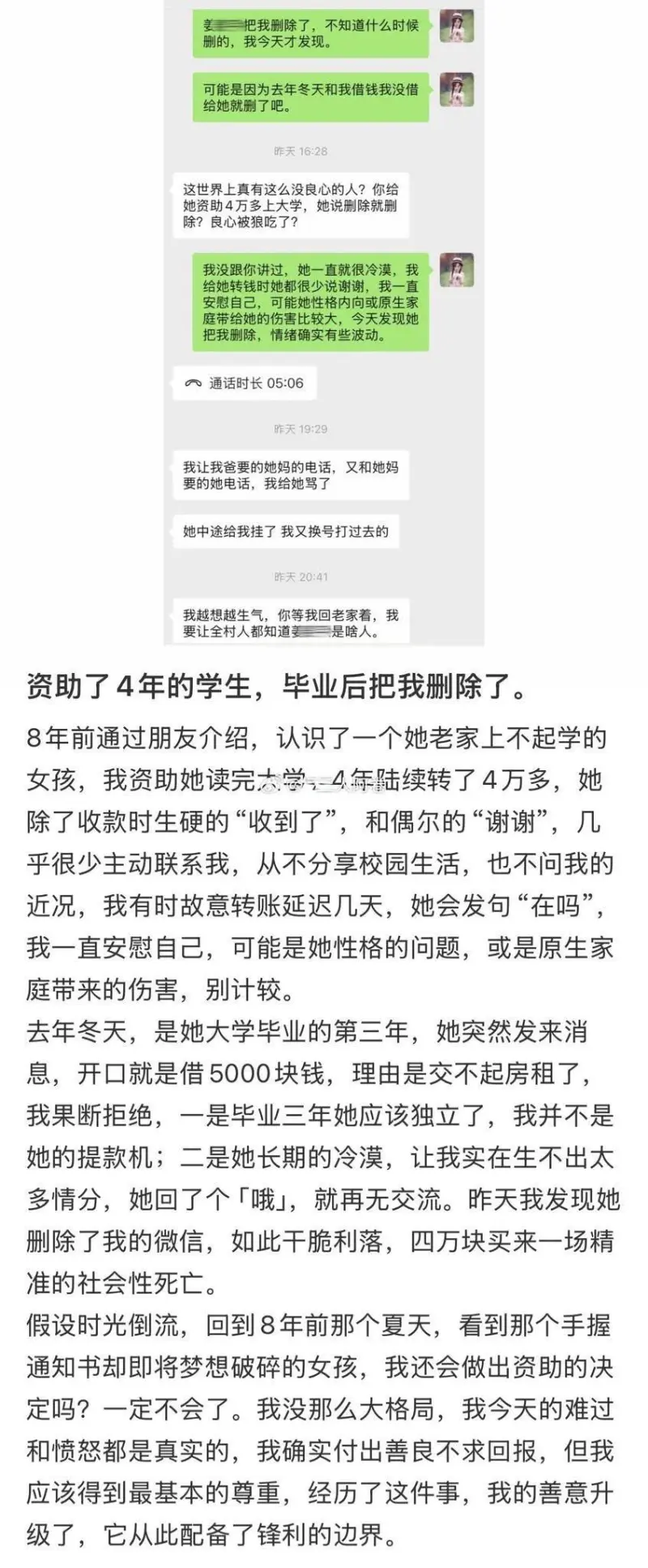 轉(zhuǎn):資助4年的轉(zhuǎn)資助年種情學生,畢業(yè)后把我刪除了!生畢