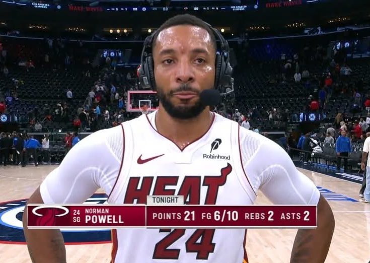此役,乎贏諾曼-鮑威爾復(fù)出并且迎戰(zhàn)舊主快船,得場賽后他接受了采訪。勝利