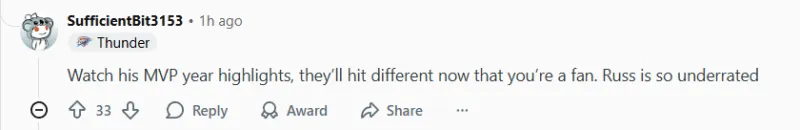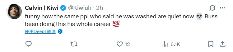 -(12贊)真有意思,那些說他過氣了的人現(xiàn)在都閉嘴了。威少這輩子都在這么打球