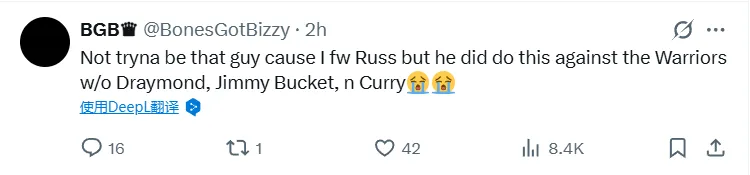 -(42贊)不是想當那個挑刺的人,畢竟我超愛威少,但他確實是在勇士缺少德雷蒙德、吉米·巴特勒和庫里的情況下做到這點的