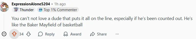-(34贊)你沒法不喜歡一個把一切都賭上、全力以赴的人,尤其是在大家都放棄他的時候。他就像籃球界的貝克·梅菲爾德