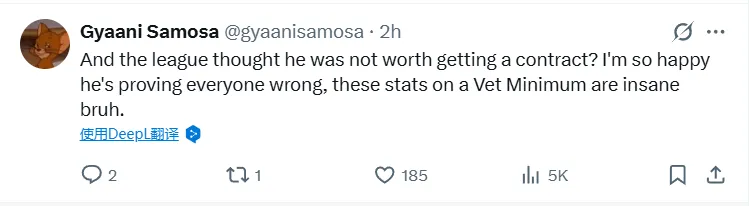 -(185贊)聯(lián)盟居然覺得他不值得簽合同?看到他用數(shù)據(jù)打臉所有人我太爽了,拿著老將底薪打出這種數(shù)據(jù)簡直瘋了,兄弟。