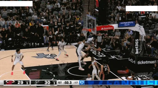 上面最后一張動(dòng)圖中,麥克勞林的三分出手選擇,就是本賽季馬刺對(duì)三分出手時(shí)機(jī)選擇的最好體現(xiàn),麥克勞林并沒(méi)有第一時(shí)間選擇出手,而是故意的等了一拍,等的就是熱火隊(duì)員全部回場(chǎng),這樣即使三分投籃不進(jìn),崩出一些長(zhǎng)籃板,也能最大概率降低熱火打反擊的機(jī)會(huì)。而這樣的場(chǎng)景在五場(chǎng)比賽中已不是個(gè)例,仔細(xì)觀察下來(lái)大概就是兩種情況,一種是馬刺第外線的防守球員處在不利的退防位置上時(shí),馬刺就會(huì)“克制”的出手三分,另一種就是上面麥克勞林中的那種場(chǎng)景,在馬刺的反擊中,對(duì)面的防守球員還未全部退回半場(chǎng)時(shí),馬刺也會(huì)“克制”的出手三分。