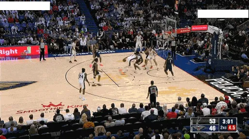 第二件是對(duì)于卡斯?fàn)枺谌?jié)后半段面對(duì)鵜鶘整場(chǎng)放卡斯?fàn)枴皟擅住辈⒎舛峦黄坡肪€的防守策略,卡斯?fàn)柸滞痘@不進(jìn),鵜鶘抓下籃板就地推反擊,由于卡斯?fàn)栐谕朔乐械淖⒁饬Σ粔蚣校基Y鶘反擊三分投中。米奇果斷的又叫出了暫停并“罕見(jiàn)”的發(fā)火了。但發(fā)火過(guò)后,在暫停回來(lái)進(jìn)攻端的布置中,針對(duì)鵜鶘的防守策略(放卡斯?fàn)柾痘@封堵突破路線+夾擊文班),設(shè)計(jì)讓文班&卡斯?fàn)柭湮辉谕粋?cè),利用文班在內(nèi)線的牽制力(鵜鶘果然又選擇夾擊文班),給卡斯?fàn)柌贾昧艘淮稳殖鍪值臋C(jī)會(huì),卡斯?fàn)栆补麛嗟拿辛四怯浫帧?/p>