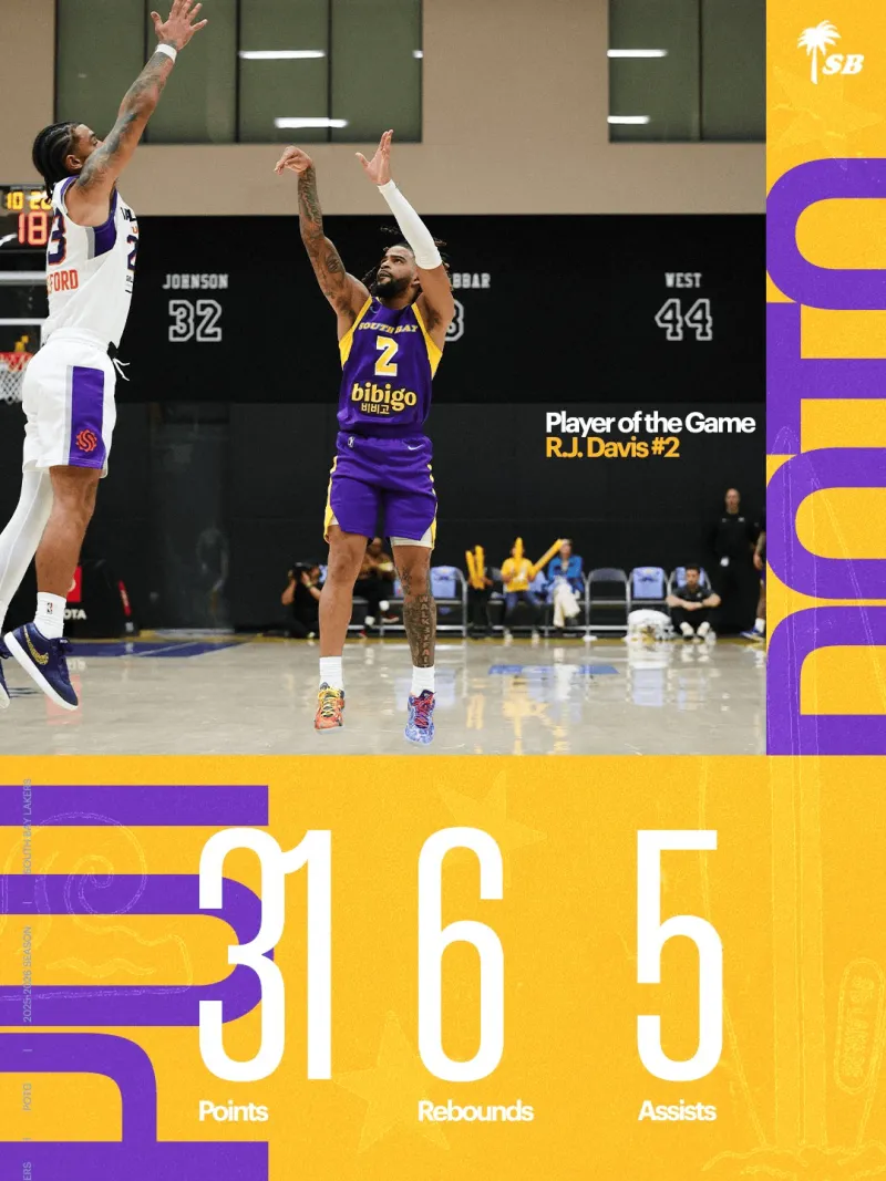 虎撲11月09日訊 今日G聯(lián)賽的賽季揭幕戰(zhàn)已經(jīng)結(jié)束。南灣湖人隊(duì)以144-105大勝山谷太陽(yáng)隊(duì)。流言聯(lián)賽