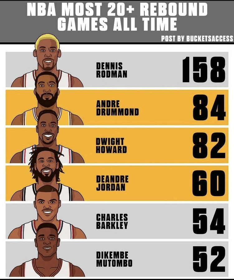 歷史單場20+籃板最多球員排行榜: