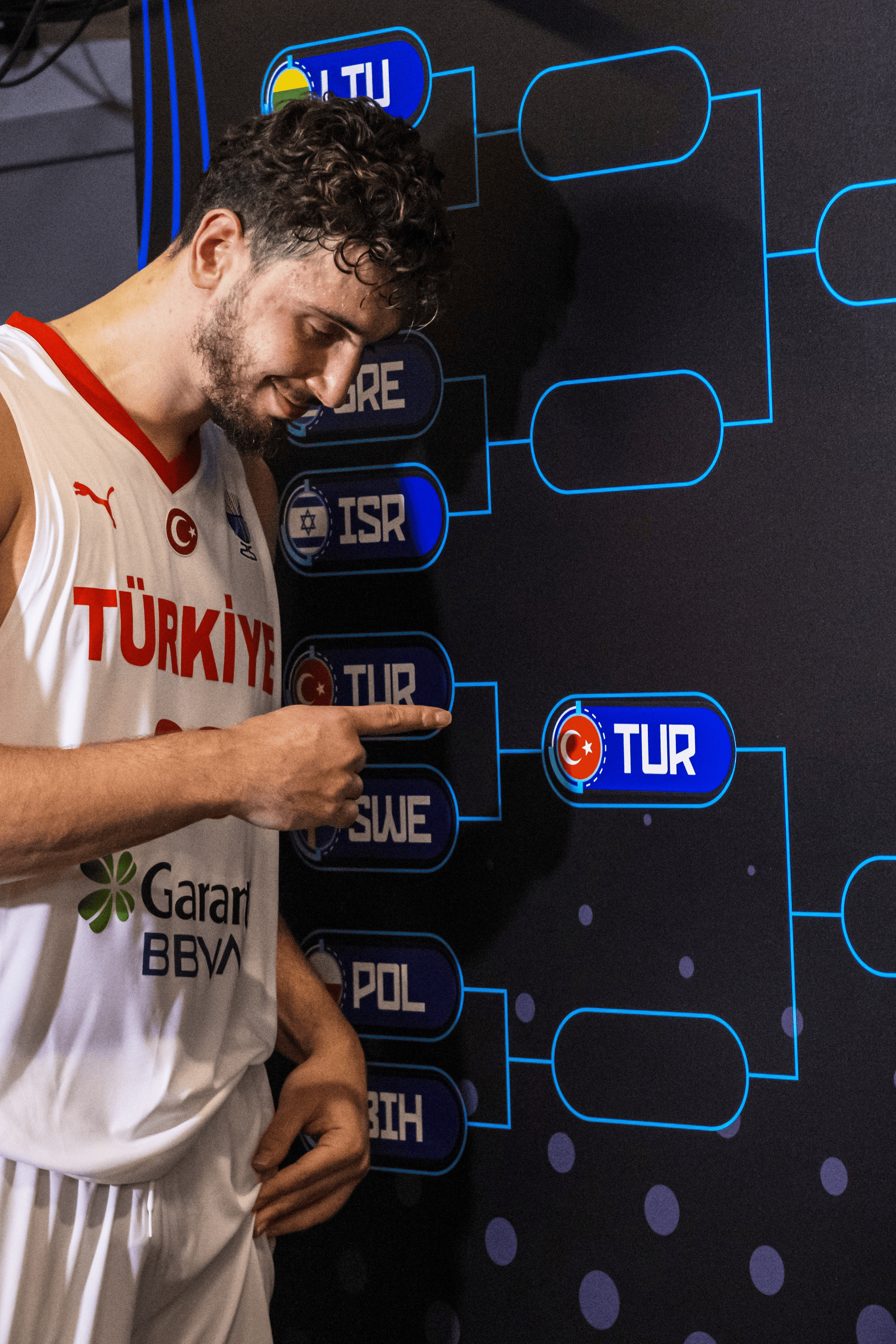 FIBA官方曬照:申京砍下24分16籃板帶領(lǐng)土耳其打進(jìn)歐錦賽八強(qiáng)。土耳
