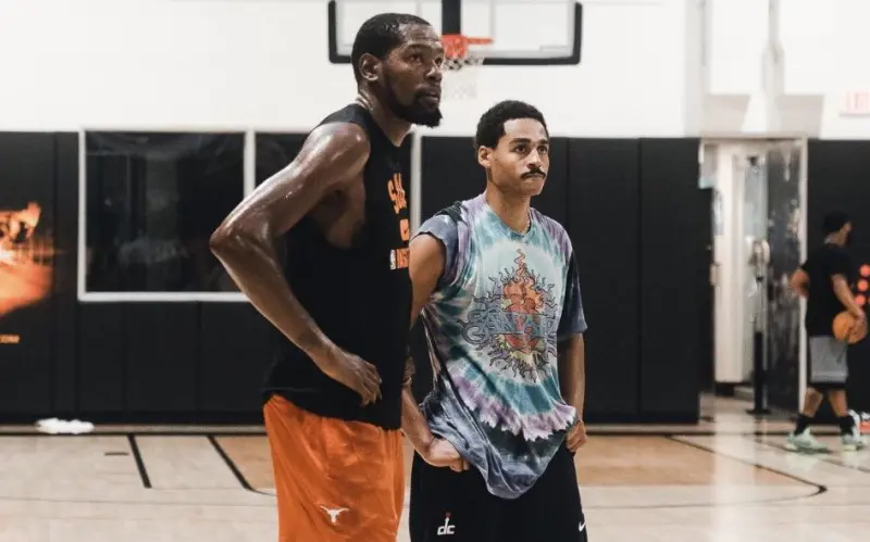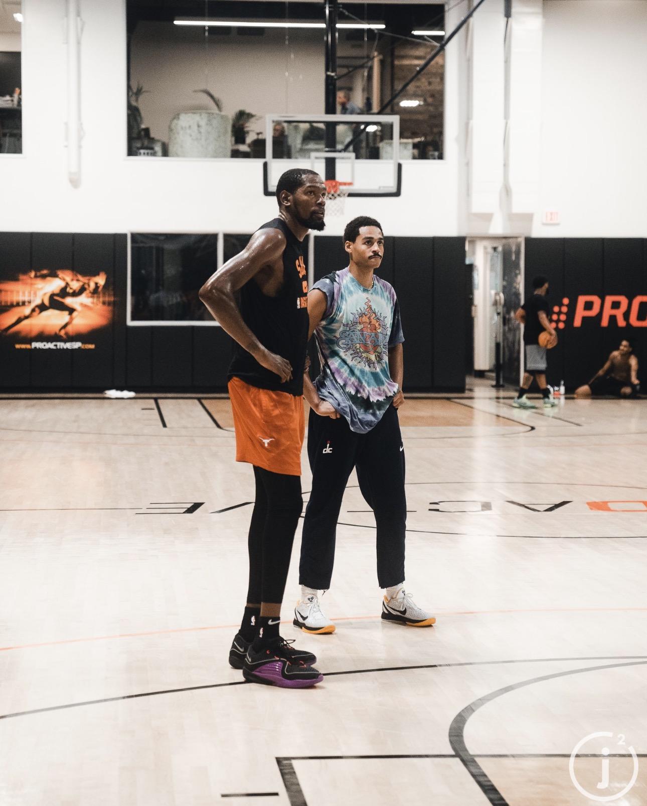 虎撲07月27日訊 攝影師Jordan Jimenez、也是板攝喬丹-普爾的好友近日更新個人推特和Instagram,曬出了多張普爾與太陽前鋒凱文-杜蘭特一同訓(xùn)練的影師照片。