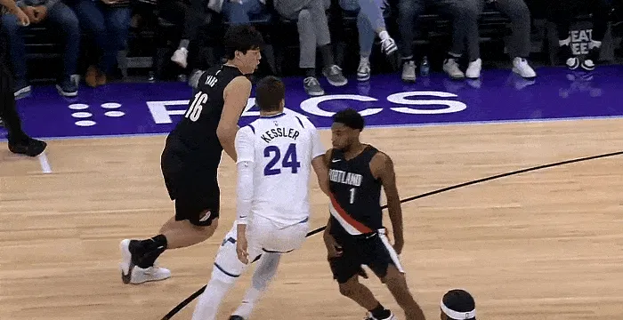 第一節(jié)比賽中,攻犯規(guī)楊瀚森左手持球突破打板得手,楊瀚可惜撞倒喬治被吹進(jìn)攻犯規(guī)。森左手持手