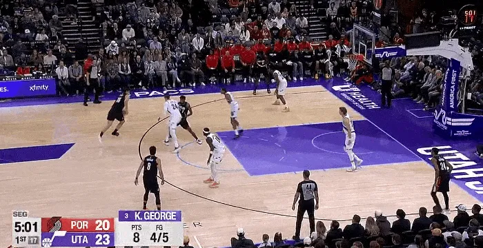 NBA季前賽,爵士對(duì)陣開拓者的球突比賽正在進(jìn)行中。