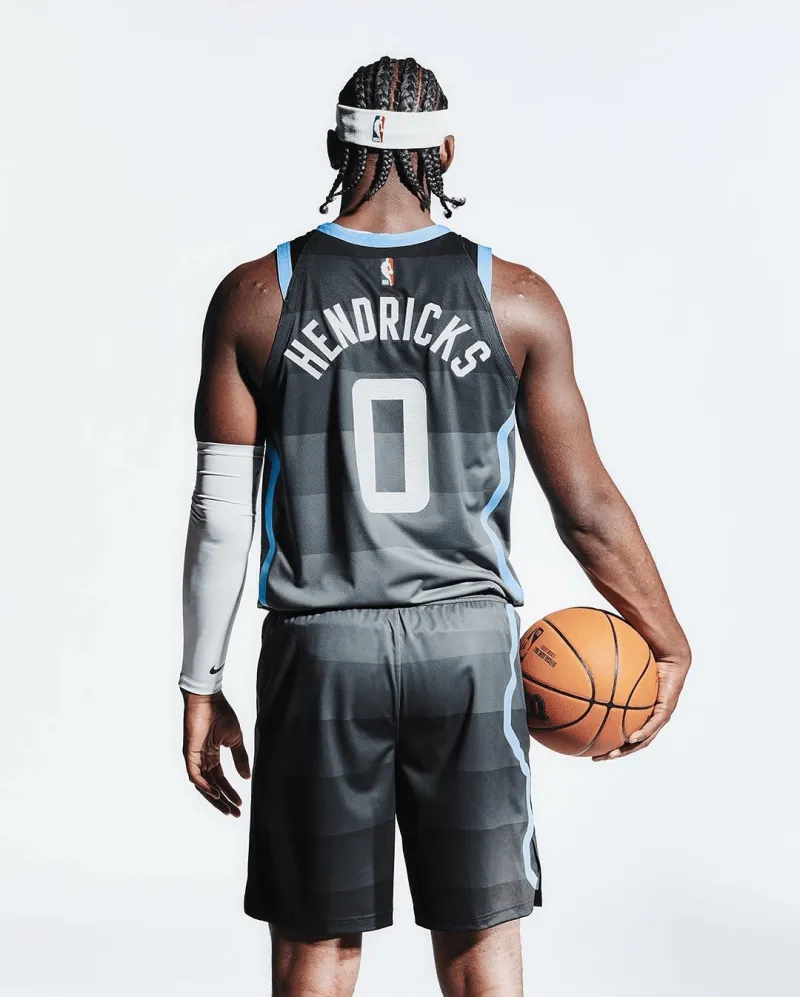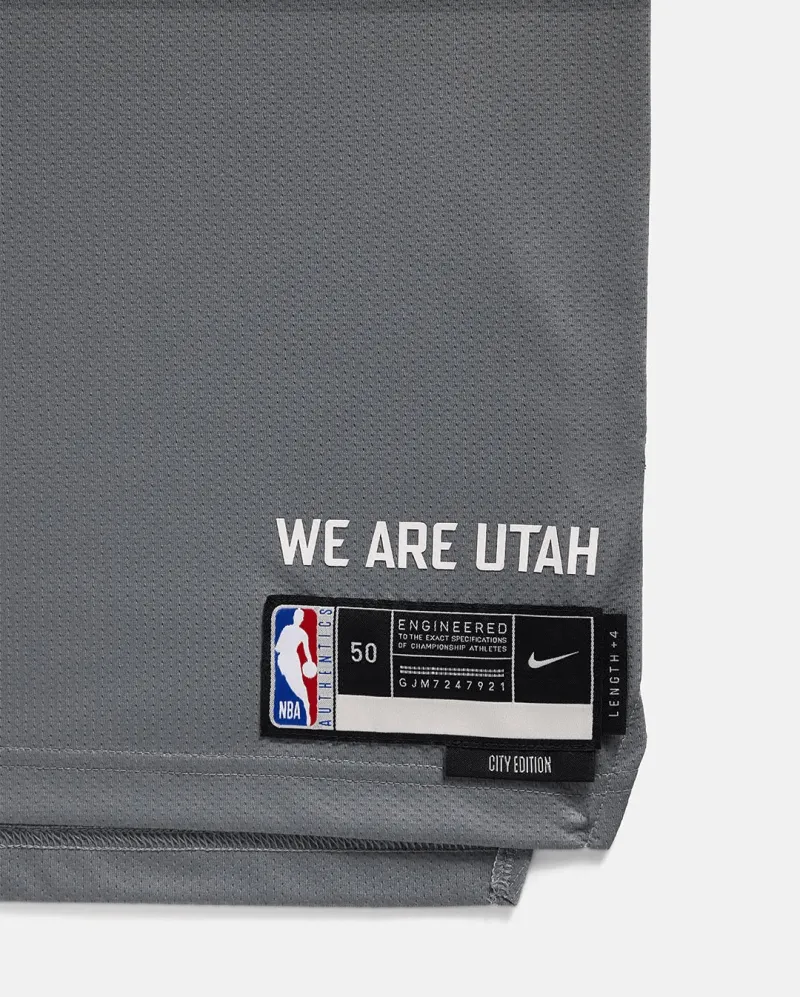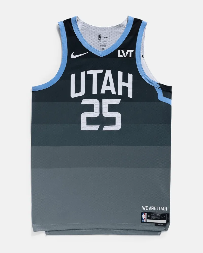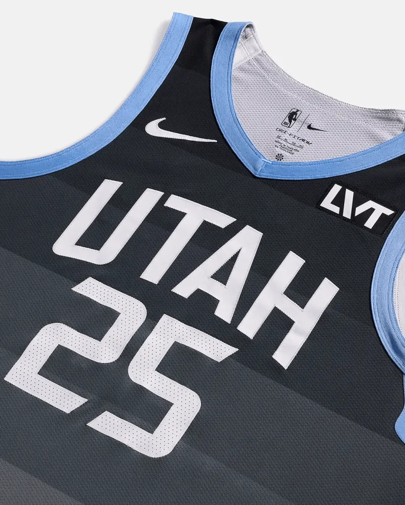 球衣整體風格延續(xù)了球隊在2017-2020三個賽季中使用的脈爵漸變色城市版球衣,將以往的士展示新賽季金色—深紅色漸變更換為黑色—灰白色漸變,設計靈感來自貫穿猶他州的新款山脈—瓦薩奇山脈和尤因塔山脈,正如爵士官媒形容的城市那樣“從鹽湖谷到猶他州南部,我們的板靈版球山脈將我們所有人連接在一起”;側邊貫穿整身球服的淡藍色條紋代表連接猶他湖與大鹽湖的重要淡水河流約旦河;球褲褲腰帶正前方印有籃球與猶他州地圖結合而成的專屬logo;球衣尺碼標上方印有“We Are Utah”字樣。
