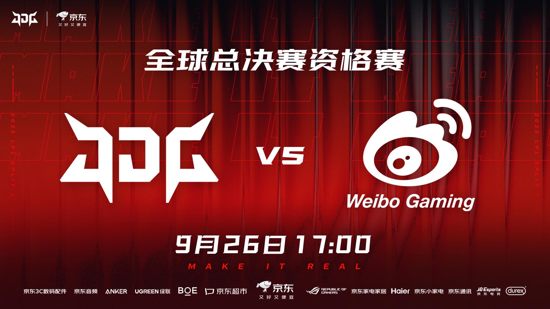 虎撲09月26日訊 2025全球總決賽LPL賽區(qū)資格賽JDG對(duì)戰(zhàn)WBG的比賽將于今日17:00進(jìn)行,勝者將與IG爭(zhēng)奪最后一張世界賽門(mén)票,板J報(bào)搏敗者將無(wú)緣世界賽,賽勝賽前雙方發(fā)布海報(bào)預(yù)熱: