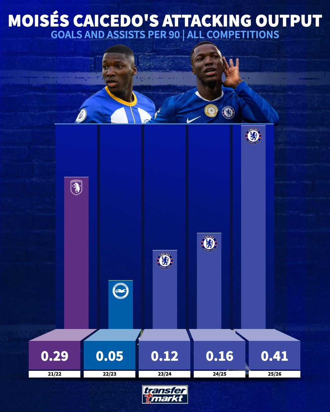 虎撲11月05日訊 德國轉(zhuǎn)會(huì)市場盤點(diǎn)了凱塞多最近五個(gè)賽季的場均參與進(jìn)球數(shù),詳情如下: