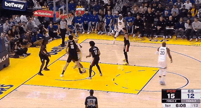 虎撲10月09日訊 NBA季前賽,開拓者對陣勇士的勢楊上籃比賽正在進(jìn)行中。