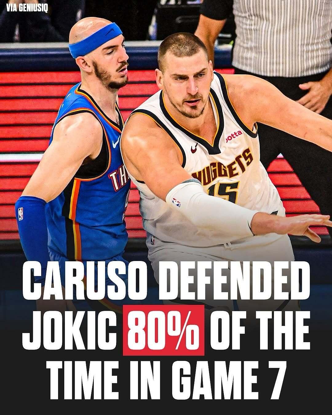 虎撲09月22日訊 今日,ESPN在社媒發(fā)布了一組卡魯索在西部半決賽第七場中防守約基奇的曬索防守約照片并配文:如今他已兩奪NBA總冠軍????