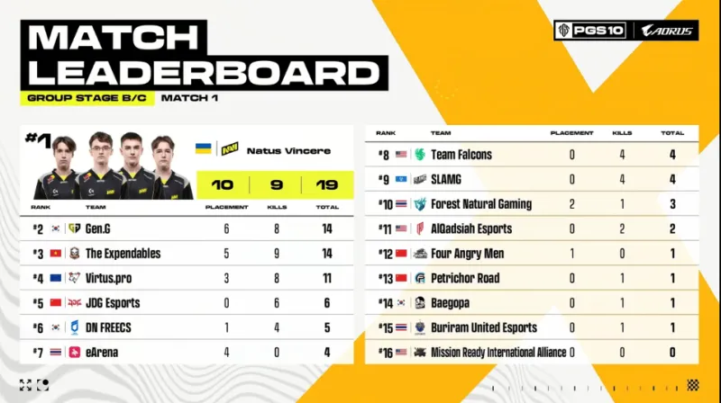 決賽圈,GEN先將EA最后一人淘汰。組賽隨后GEN將圈邊掛后的領(lǐng)跑力單Tanvuu打掉,TE兩人前來(lái)支援也被淘汰。日第最終NAVI占據(jù)更好位置輕松吃雞。僅獲