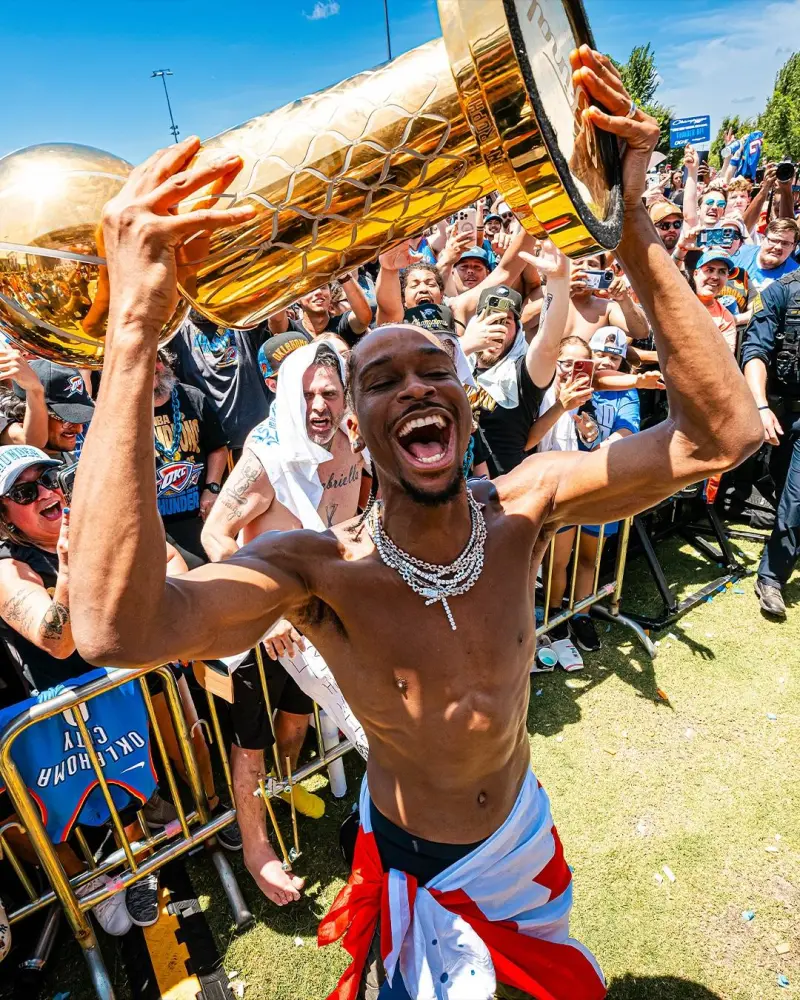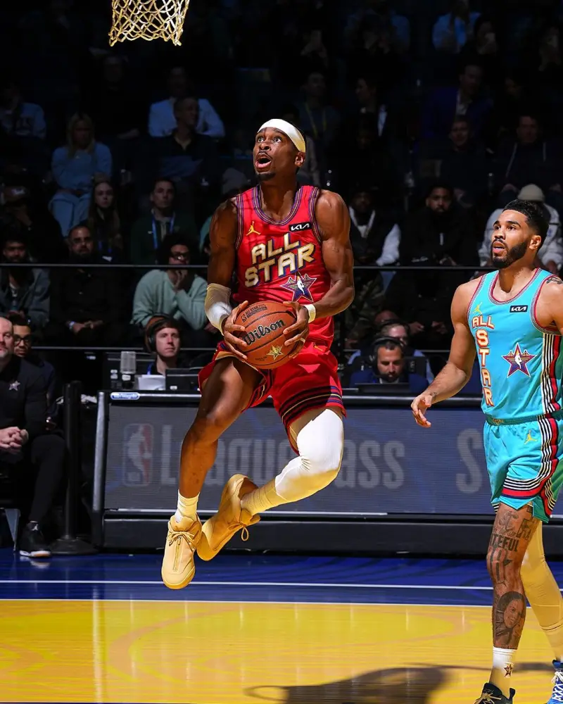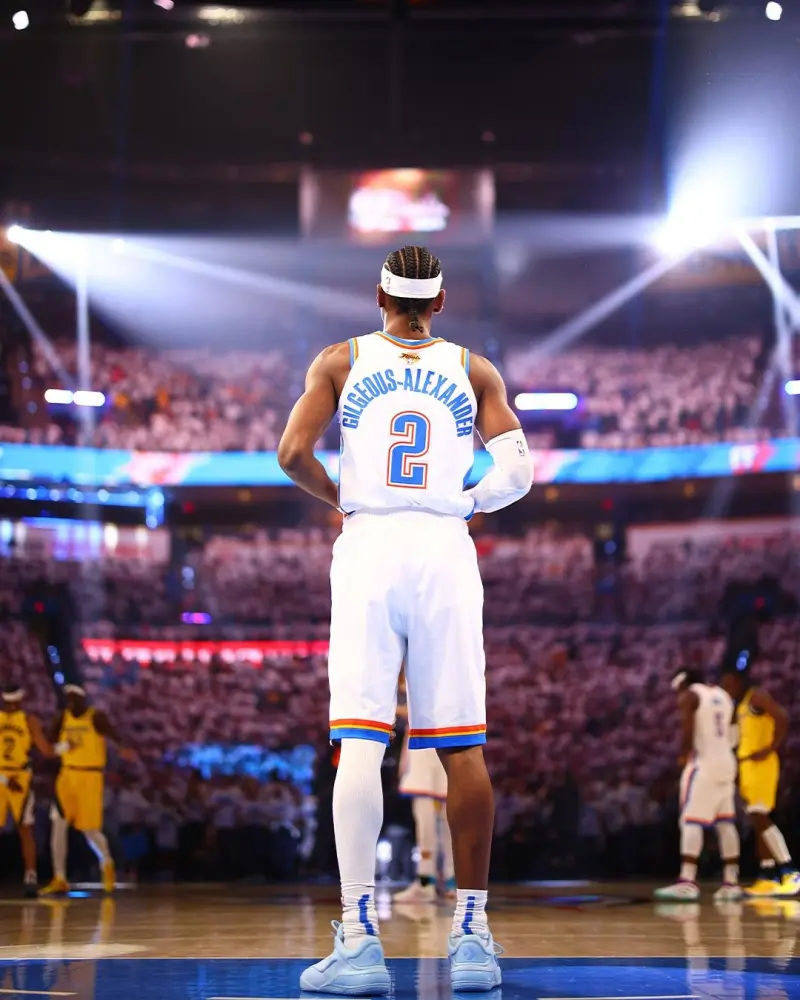 本賽季至今,享亞謝伊-吉爾杰斯-亞歷山大場(chǎng)均可以得到40.0分6.0籃板5.0助攻1.7搶斷1.3蓋帽。大各的照