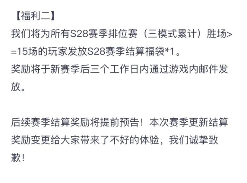 福利二:每個(gè)人再送個(gè)4萬代表我誠摯的歉意哈哈 也不是白送 上賽季沒打超過15把的沒有