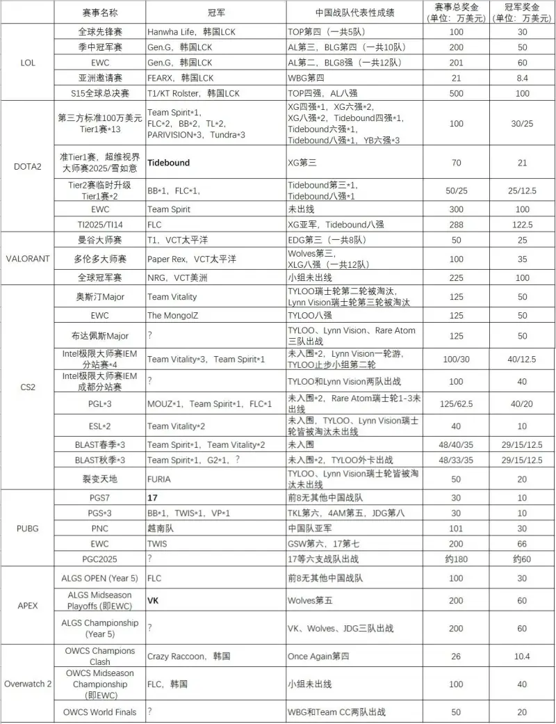 【2025賽季主要端游頂級(jí)賽中國(guó)戰(zhàn)隊(duì)成績(jī)匯總】中國(guó)電競(jìng)黑暗時(shí)刻?