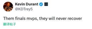 杜蘭特回復:“是杜蘭那些總決賽MVP,他們永遠無法從中恢復。板勇”