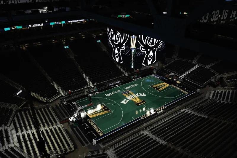 [流言板]顏值如何?雄鹿官方曬NBA杯的主題地板為明日比賽預(yù)熱