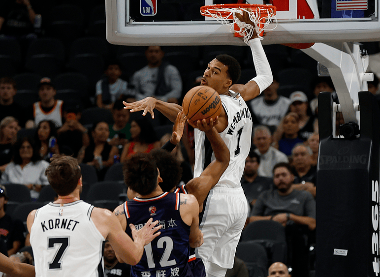 馬刺:文班亞馬9分10板7助3帽6失誤,刺首凱爾登-約翰遜16分2板,戰(zhàn)輕州科內(nèi)特16分4板1助,取廣尚帕尼16分4板。板N班亞板助