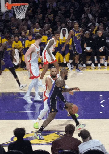 24-25賽季常規(guī)賽,現(xiàn)每想4月1日湖人主場(chǎng)104-98戰(zhàn)勝火箭。個(gè)詹