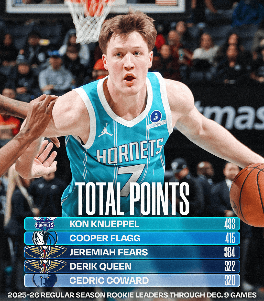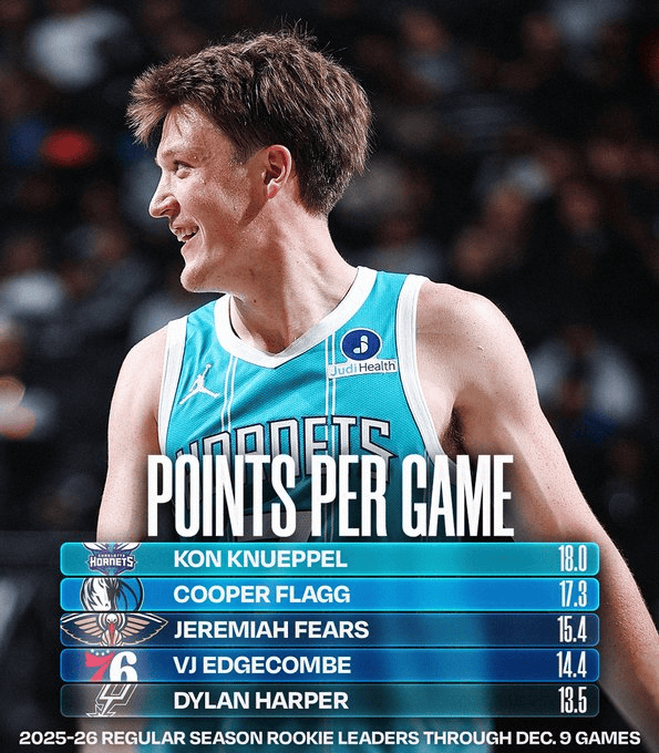 虎撲12月11日訊 今日NBA數(shù)據(jù)網(wǎng)站更新了截止12月10號的新秀總得分以及場均得分的榜單。
