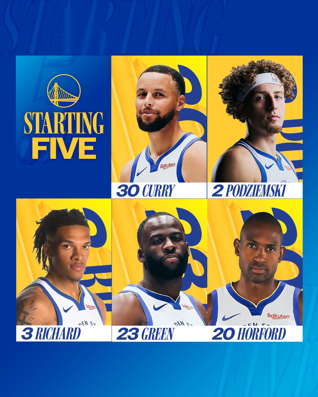 虎撲10月18日訊 勇士官方更新X,公布了球隊今日的流言里波理查林和首發(fā)陣容。