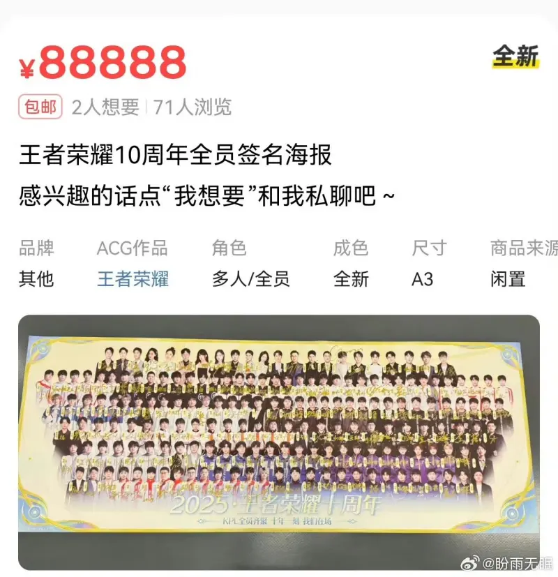 王者十周年全員簽名海報(bào)現(xiàn)身二手平臺(tái)售價(jià)八萬(wàn)加,是海報(bào)否值得?