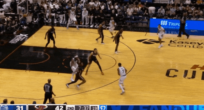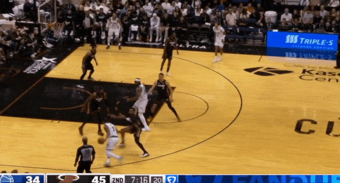 第二節(jié)比賽,得分到分貝恩里突外投個人連得5分,目前目前已得到9分。板進