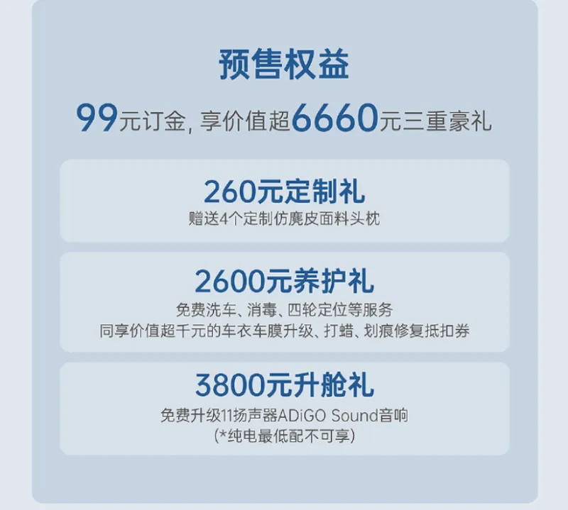 虎撲11月03日訊 埃安AION i60正式開啟預(yù)售,其中增程版12.68萬起,純電版11.98萬起。預(yù)售期間,下訂用戶僅需99元就可獲得價(jià)值6660的三重禮遇。