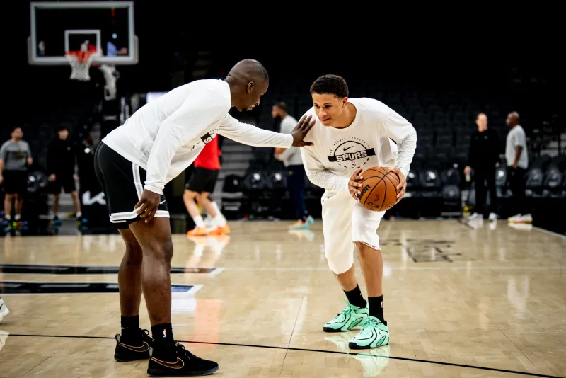 賽前,賽前時表松并馬刺社媒分享達(dá)龍-福克斯在賽前熱身時與隊友的熱身互動瞬間。