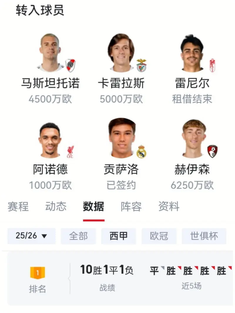 西甲差不多三分之一賽程過(guò)去了,也經(jīng)歷過(guò)不大不小的則安傷病潮,我團(tuán)休賽期買(mǎi)的新人,A費(fèi)和赫伊森已經(jīng)刮中獎(jiǎng)了,阿諾德是個(gè)白嫖的就不予置評(píng)了,敗筆也就在小馬身上,不過(guò)還年輕才18歲…