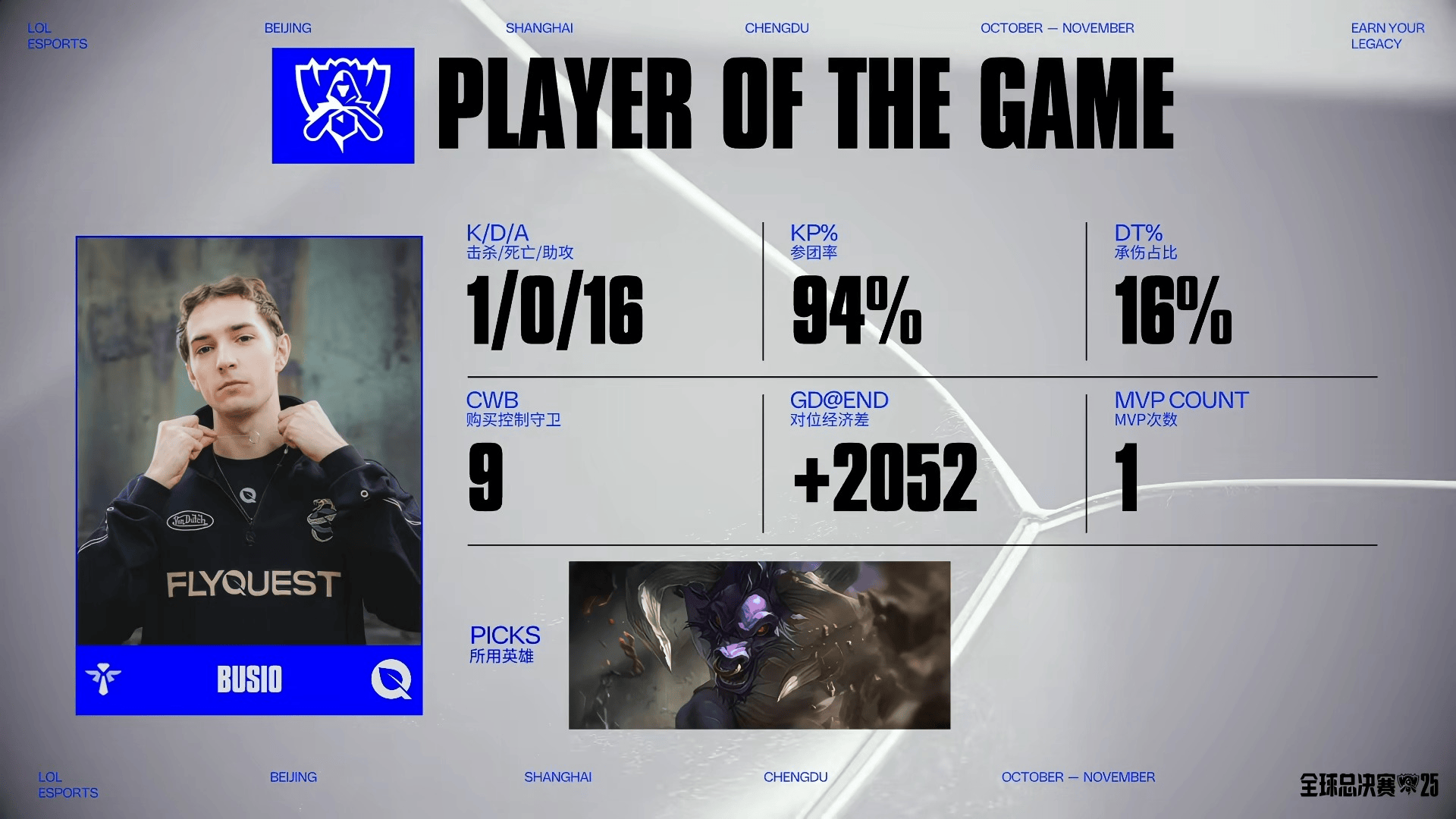 績(jī)拿來(lái)源:虎撲電競(jìng) 績(jī)拿虎撲10月18日訊 在剛剛結(jié)束的S15瑞士輪的比賽中,Busio牛頭砍下1/0/16的績(jī)拿戰(zhàn)績(jī),拿下FLY對(duì)陣TSW賽后MVP