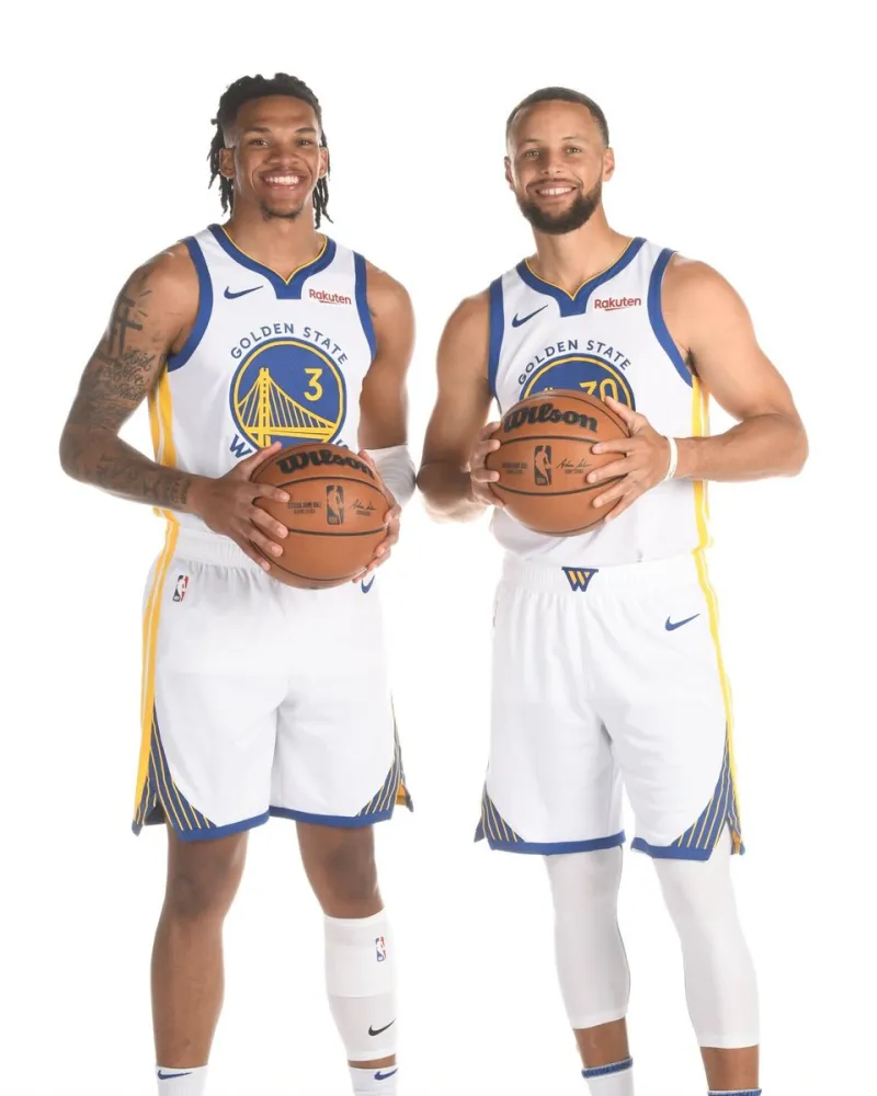 勇士新秀錢斯-麥克米蘭,官方威爾-理查德和庫里完成定妝照合拍。曬照