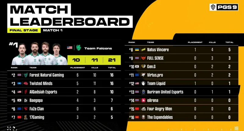 階段8,決賽雞單局淘FOR炸掉BGP獨(dú)狼,賽后隨后無傷團(tuán)滅TWIS,決賽雞單局淘隨后FLC拉車到FOR身后,賽后雙方1換1,決賽雞單局淘場面3打2,賽后隨后FLC雙人突進(jìn)打掉FOR前點(diǎn)隊(duì)員。隨后FOR最后一人打掉FLC一人,又用燃燒彈燒到FLC一人,但出擊時(shí)被FLC第三人接住出局。