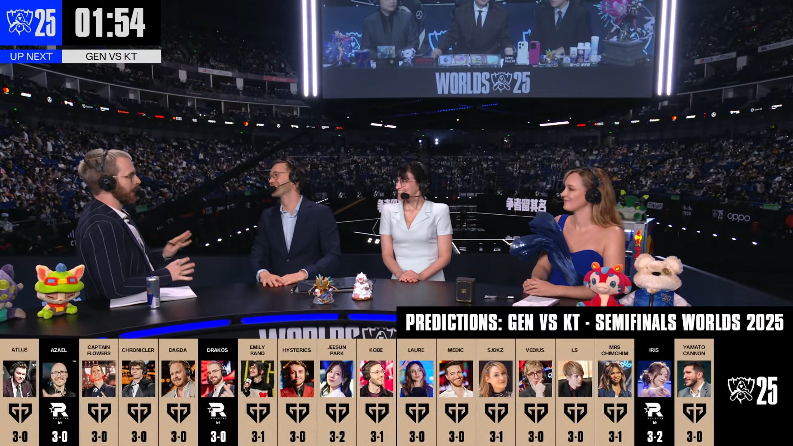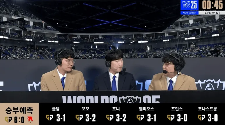 虎撲11月01日訊 2025全球總決賽四強(qiáng)賽GEN vs KT開始前,英文流和韓文流各自給出預(yù)測: