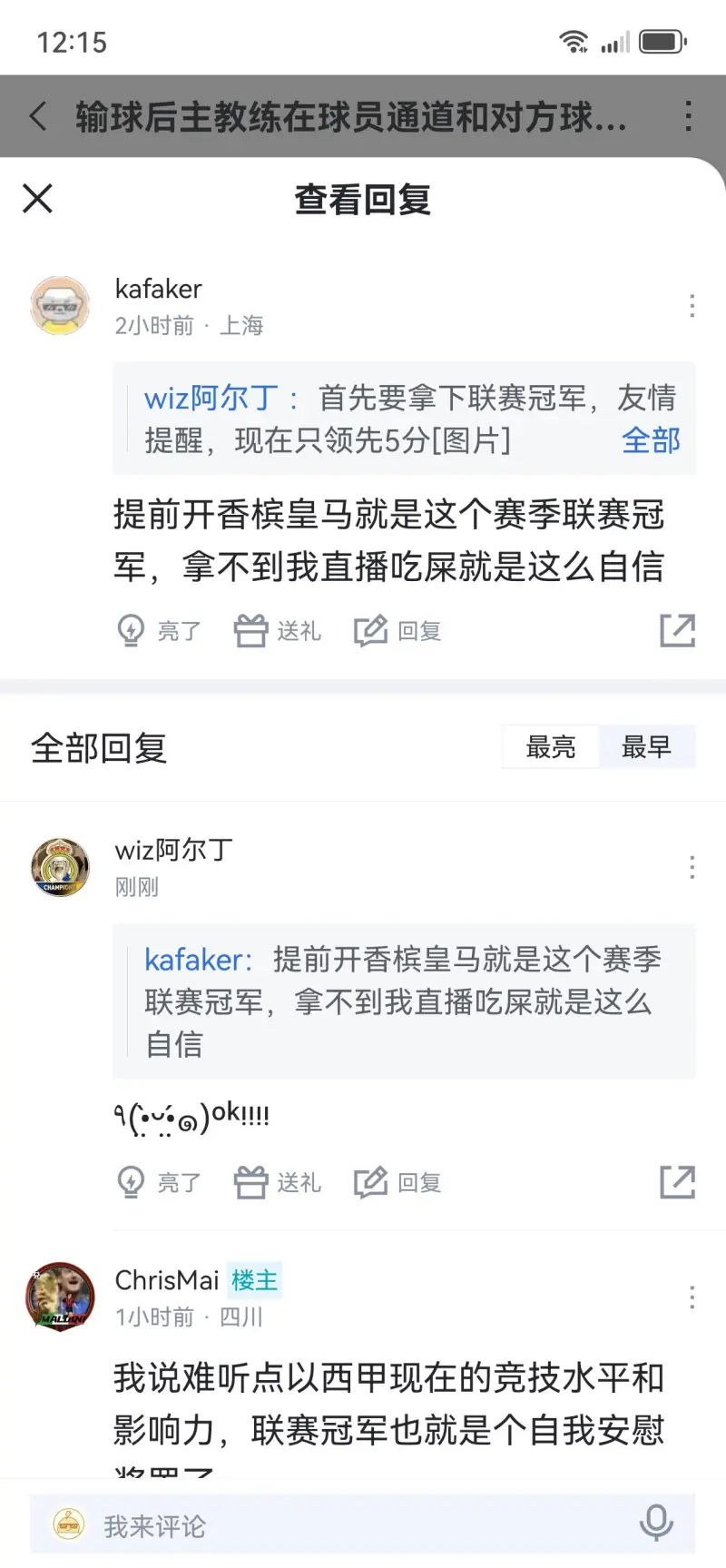 大家看看哈,這哥們說皇馬拿不到聯(lián)賽冠軍直播吃屎,皇馬伙都這可不是拿冠我逼他的,我只是滿足讓他放平心態(tài)別半場(chǎng)開香檳。