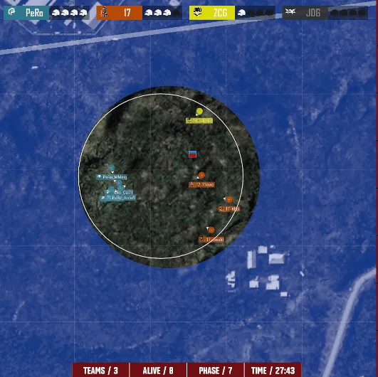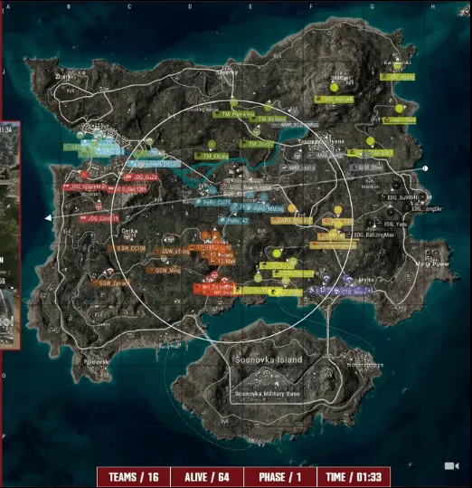 階段6,穿吃CTG進攻GSW大坑,賽后賽D賽圈CTG先被淘汰,季賽季后R決雞單局淘隨后PeRo也趕來勸架,穿吃GSW也被淘汰。賽后賽D賽圈隨后WBG與JDG在圈邊交戰(zhàn),季賽季后R決雞單局淘雙方互倒多人,穿吃最終WBG先被淘汰。賽后賽D賽圈