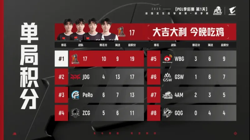 本局前四:PeRo 17 ZCG JDG