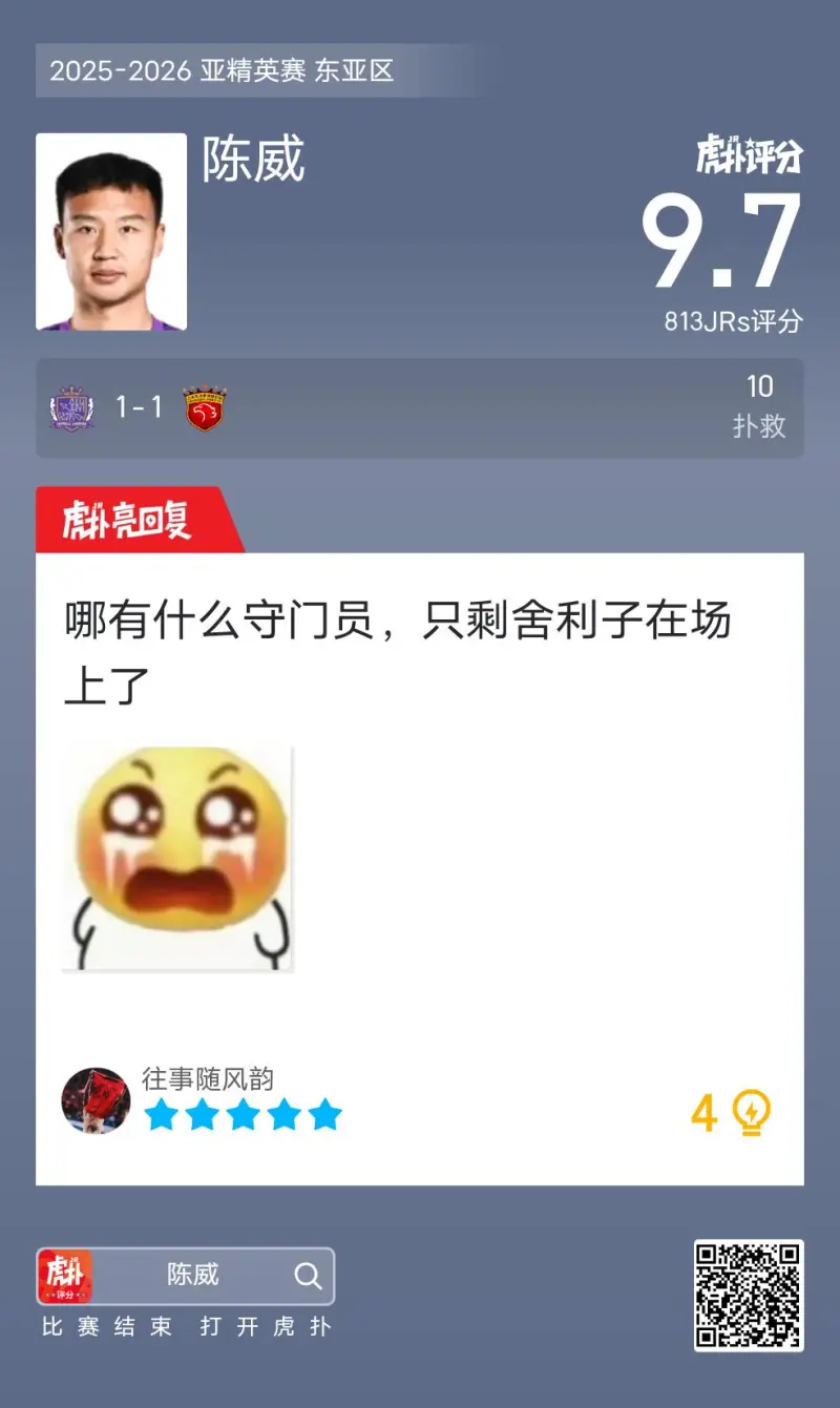 在剛剛結(jié)束的亞冠精英聯(lián)賽中,上海海港在客場逼平廣島三箭。成舍此役海港門將陳威發(fā)揮出色,顧今關(guān)鍵力保球隊在客場艱難取回一分。晚陳威